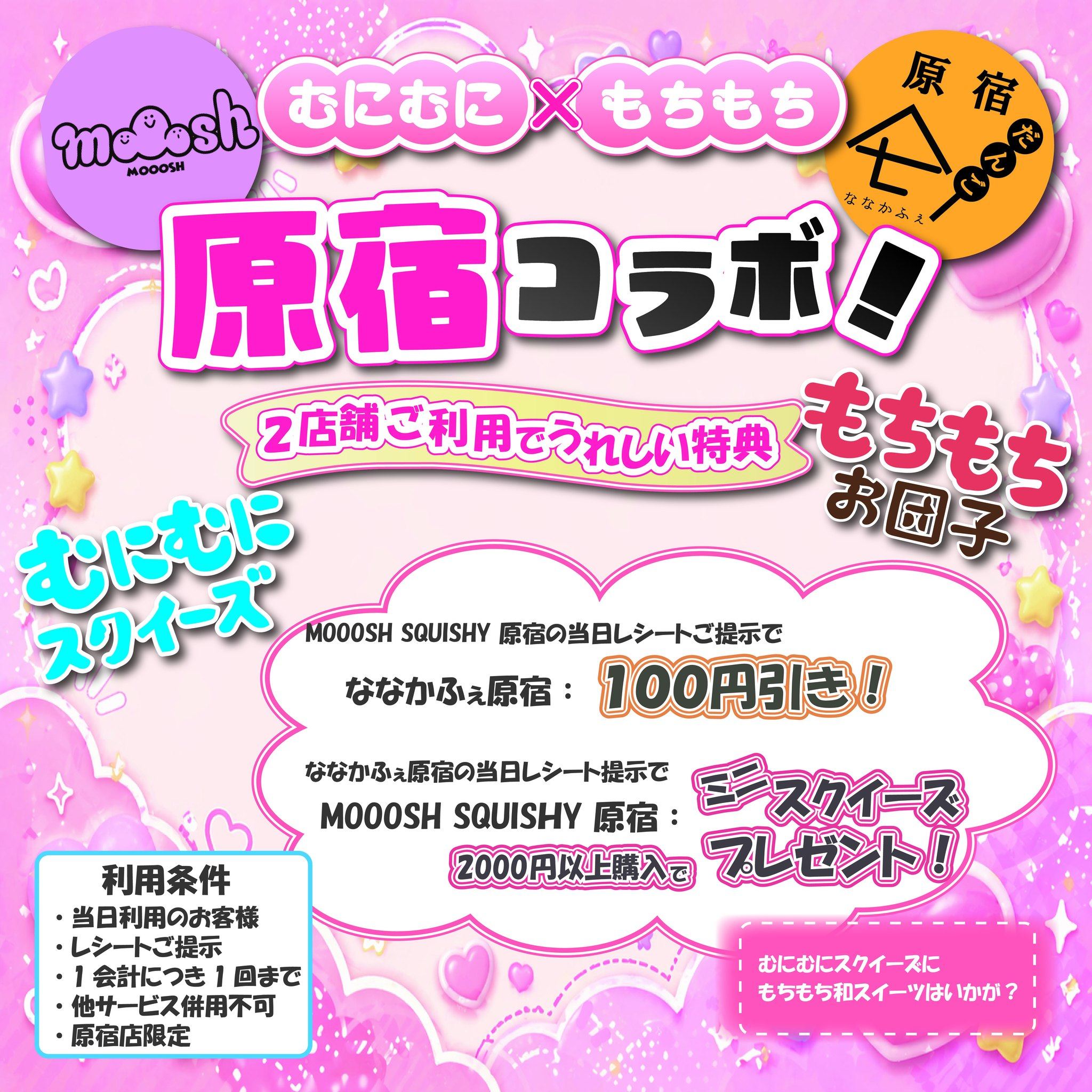 ※MOOOSH SQUISHY 原宿店での特典は、ななかふぇ原宿のレシート提示+2,000円以上購入のお客様が対象です。